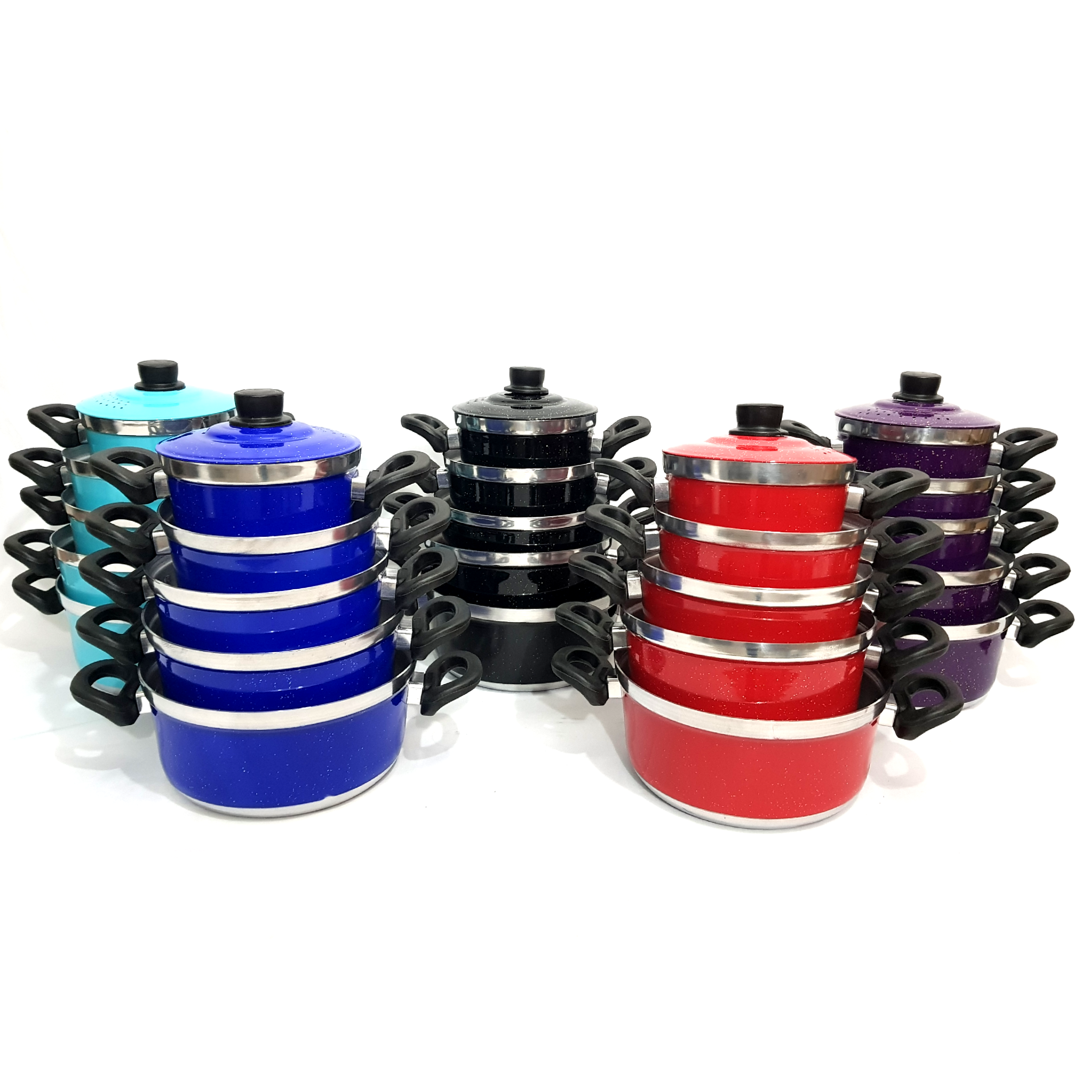 O cozimento é rápido e uniforme, seja ao utilizá-lo em fogão. As tampas são de alumínio também na mesma cor correspondente a panela.