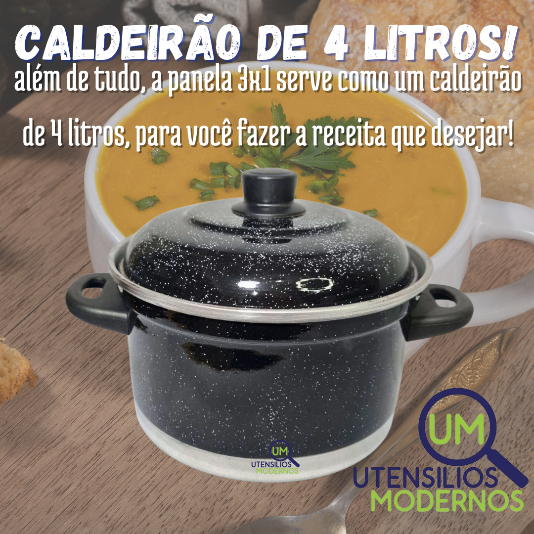 Essa panela 3 em 1 garante que alimentos não grudem na superfície, o que facilita a limpeza.