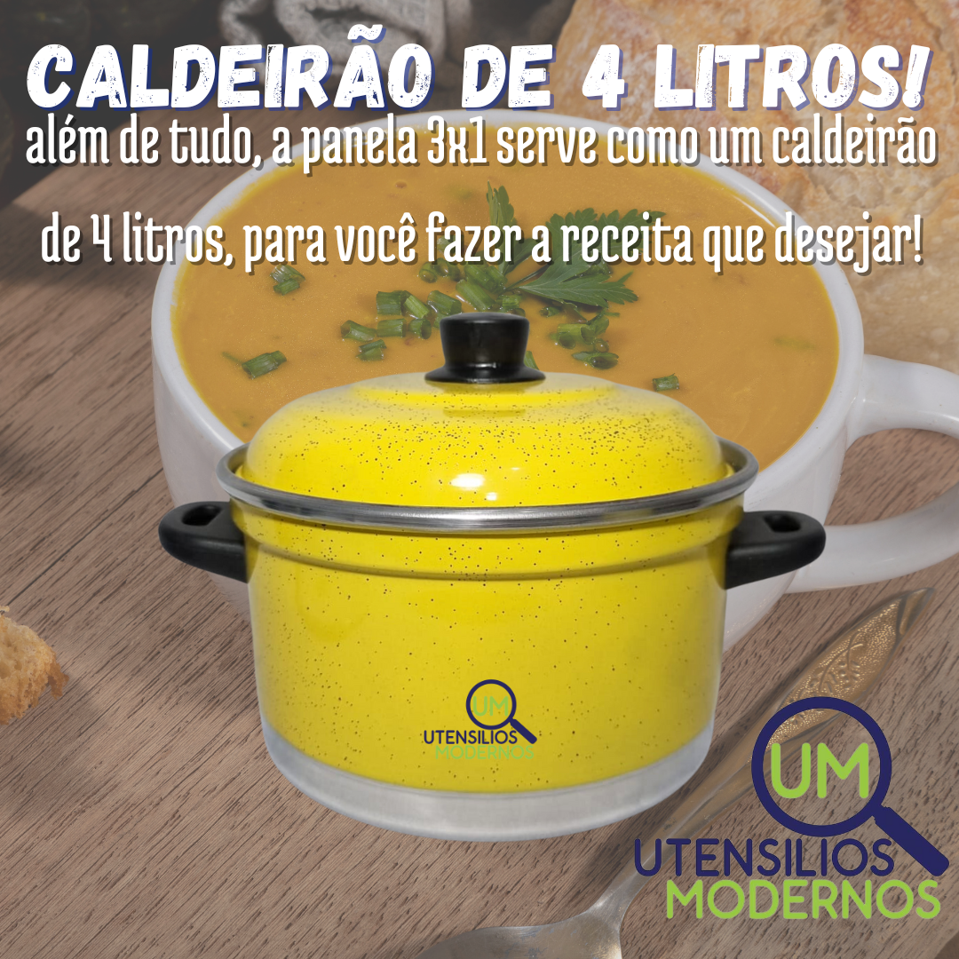 Panela multiuso 3 em 1 de Alumínio Amarelo