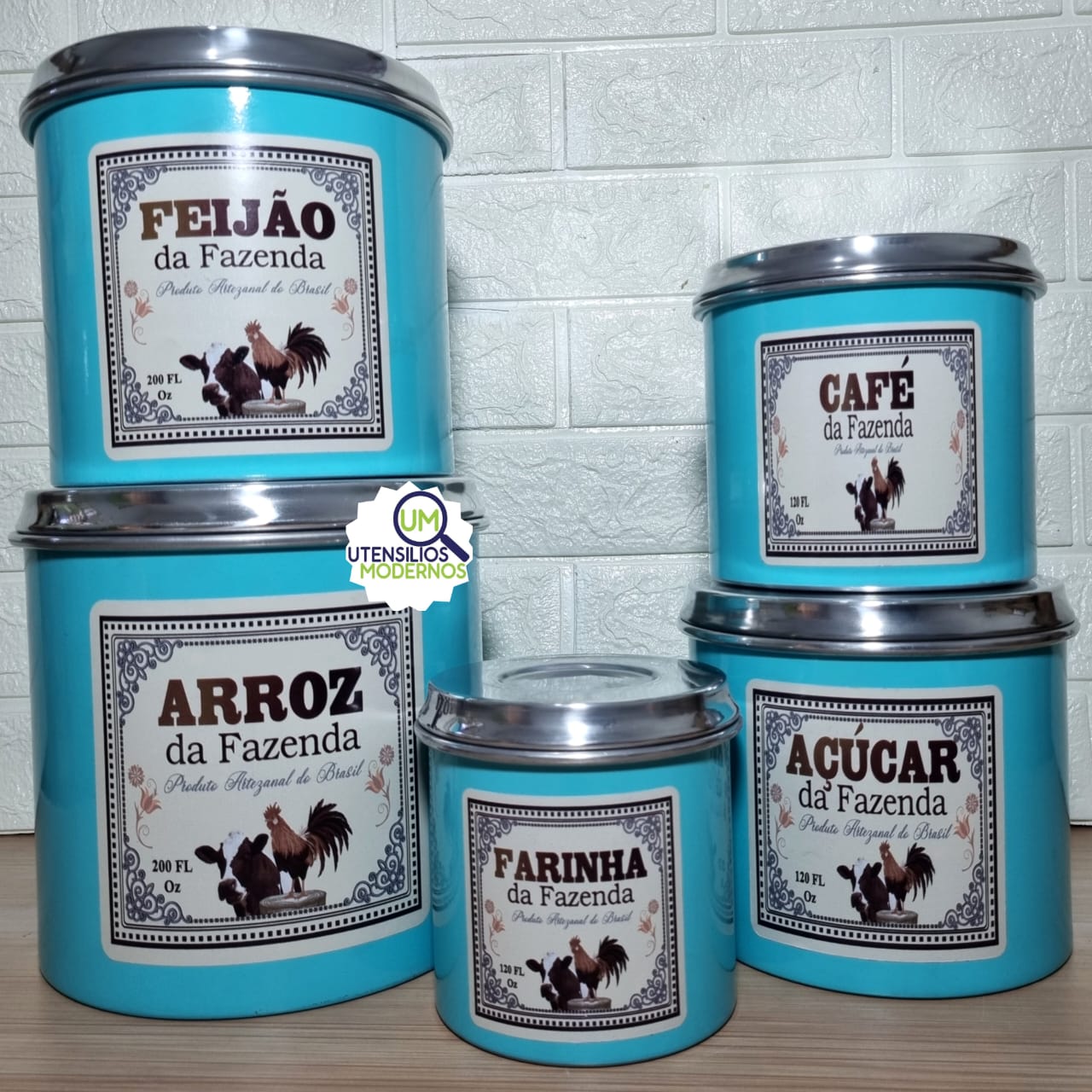 Jogo de Panela 5 Pçs Tiffany + Kit Mantimentos Alumínio 5 Pçs Fazenda Tiffany + Espatulas