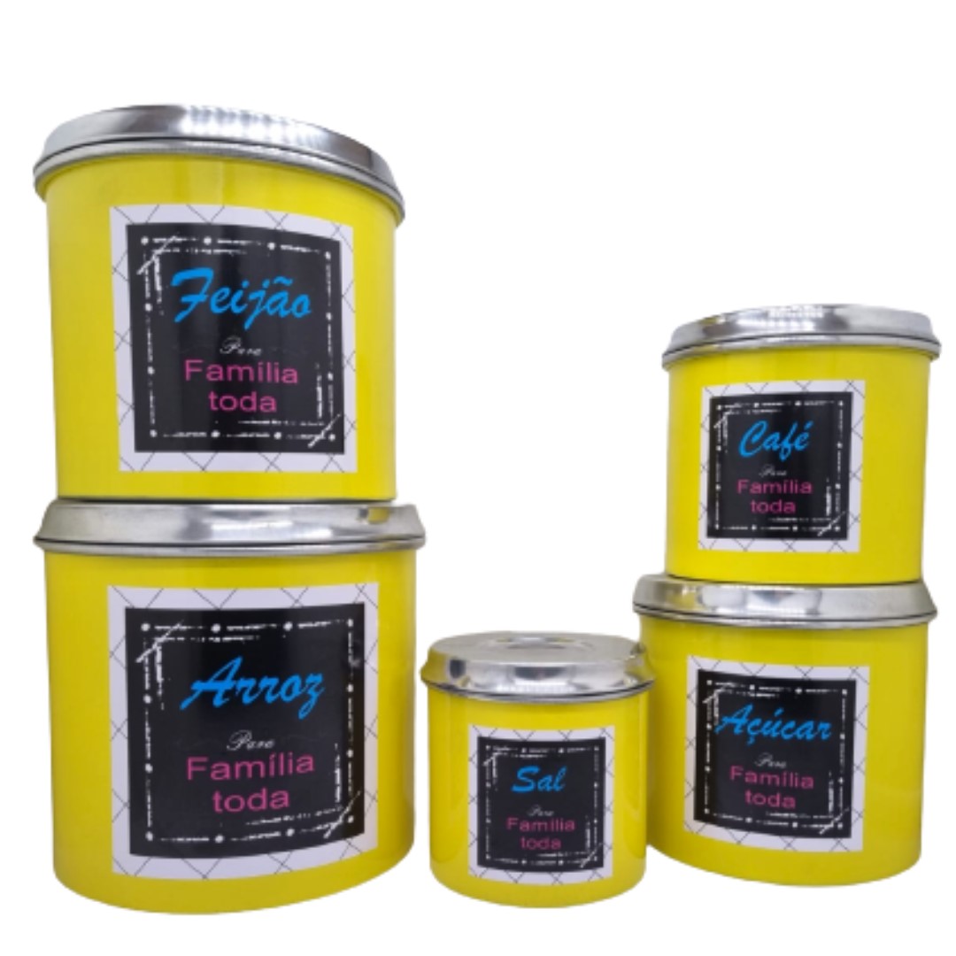 Potes Porta Mantimentos Jogo De Lata Em Alumínio 5 Peças