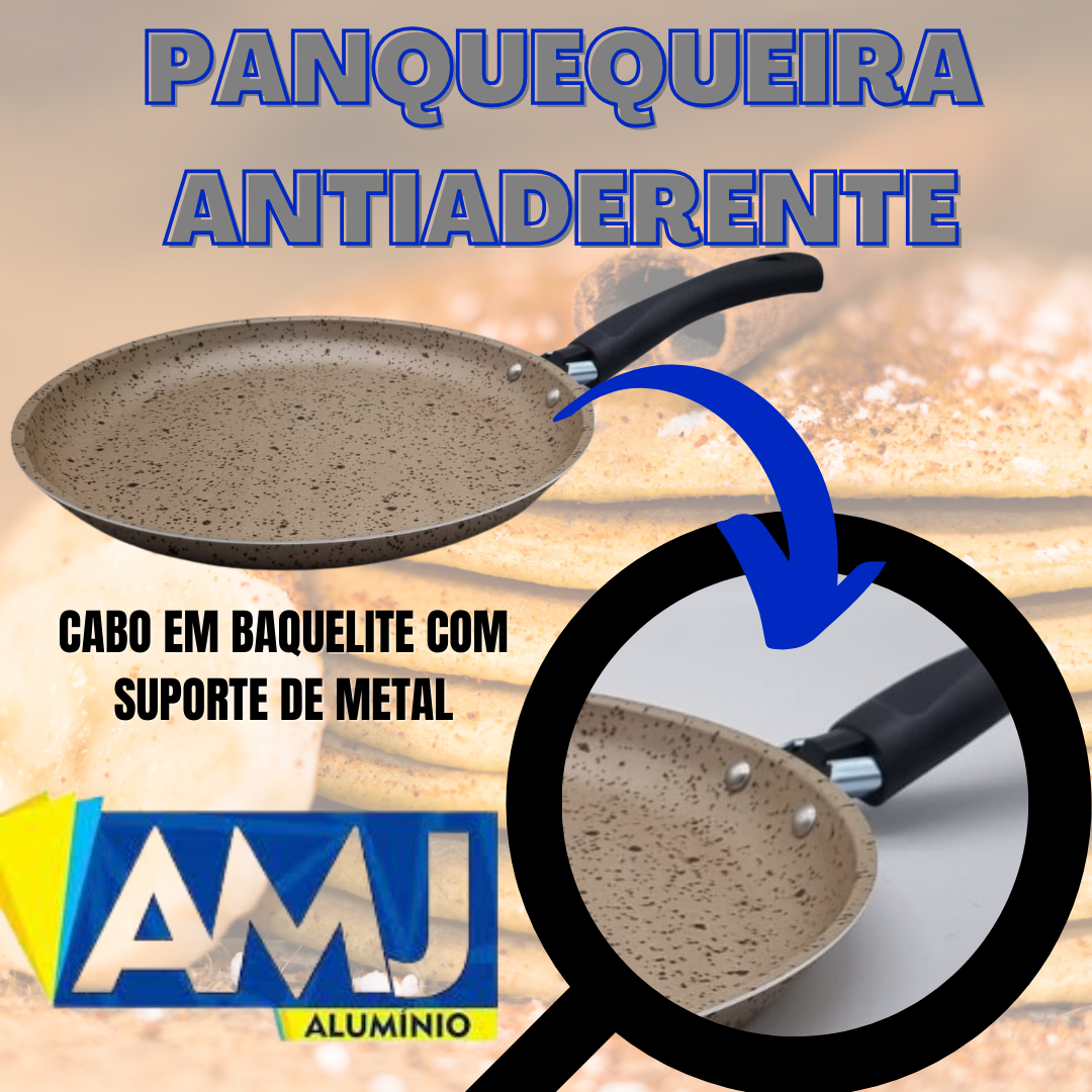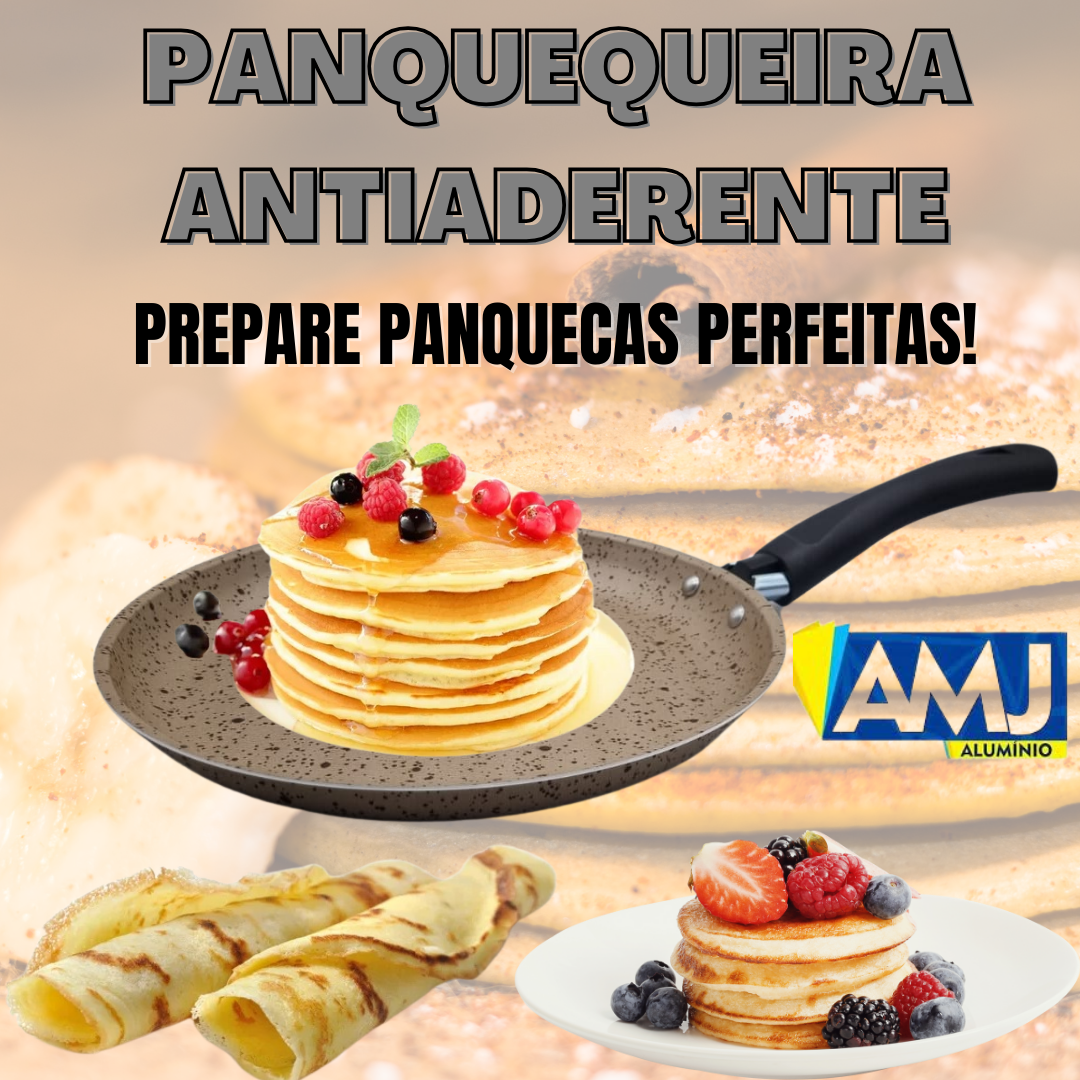 Essa panquequeira N ° 22 é perfeita para o preparo de deliciosas panquecas e tapiocas. Para cozinhar sempre melhor e com mais qualidade e praticidade. Uma linha completa com os melhores produtos antiaderentes, para seus alimentos não grudarem, assim facilita a limpeza e reduz o uso de gordura. Possui alças em baquelite que não aquecem, para o melhor conforto no manuseamento. Também pode ser utilizada como frigideira.