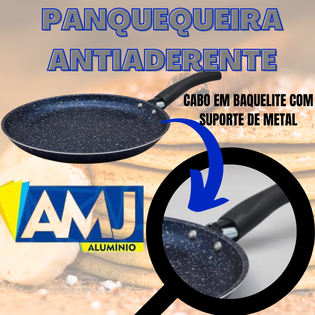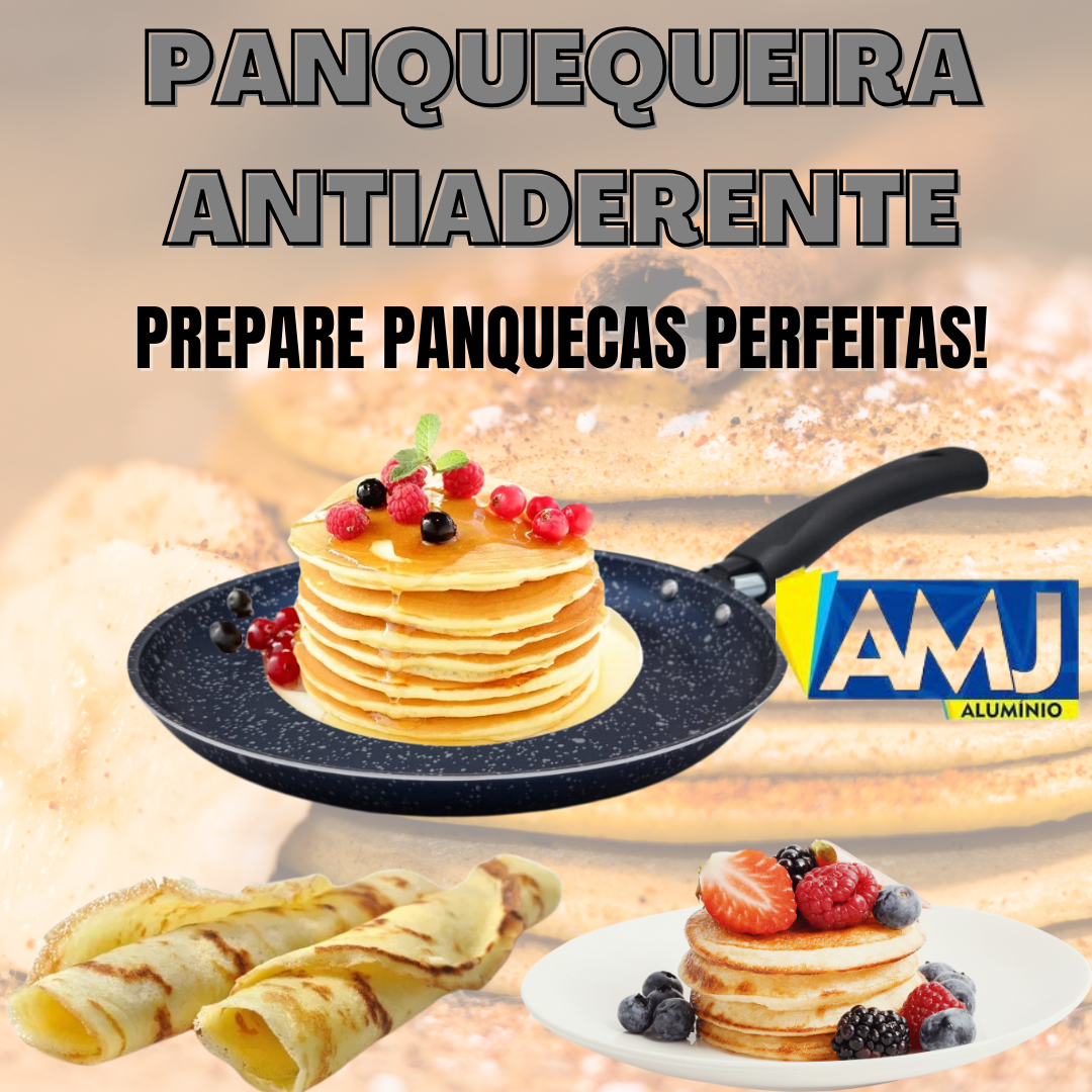 Essa panquequeira N ° 22 é perfeita para o preparo de deliciosas panquecas e tapiocas. Para cozinhar sempre melhor e com mais qualidade e praticidade. Uma linha completa com os melhores produtos antiaderentes, para seus alimentos não grudarem, assim facilita a limpeza e reduz o uso de gordura. Possui alças em baquelite que não aquecem, para o melhor conforto no manuseamento. Também pode ser utilizada como frigideira.